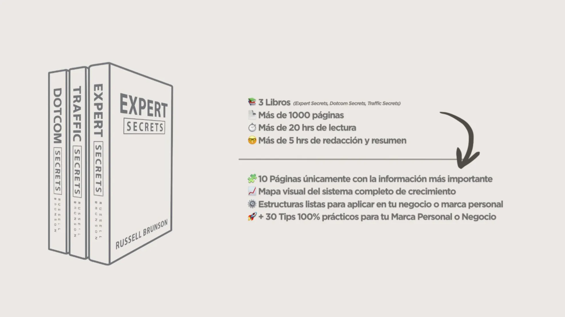 Durante 4 meses leí, desmenucé y traduje en acciones prácticas los 3 libros más importantes de Russell Brunson — DotCom Secrets, Expert Secrets y Traffic Secrets.