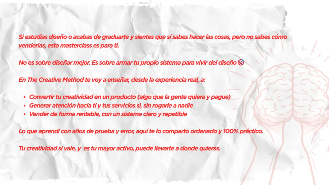 Si estudias diseño o acabas de graduarte y sientes que sí sabes hacer las cosas, pero no sabes cómo venderlas, esta masterclass es para ti.