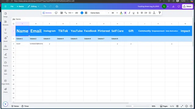 Tracking Sheet: Name and email .. Channel(s) .. Messaging that resonates ..