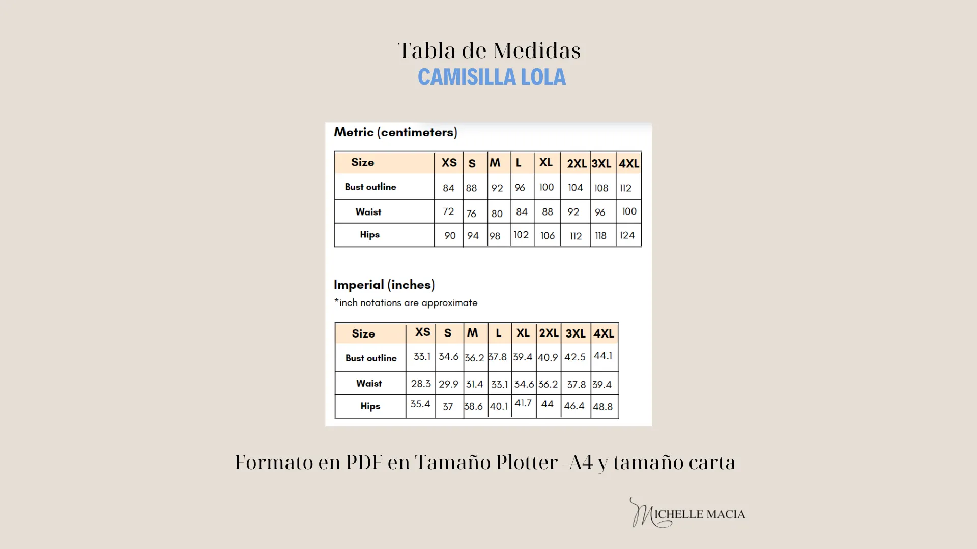 Todas las tallas se encuentran disponibles en el mismo archivo PDF