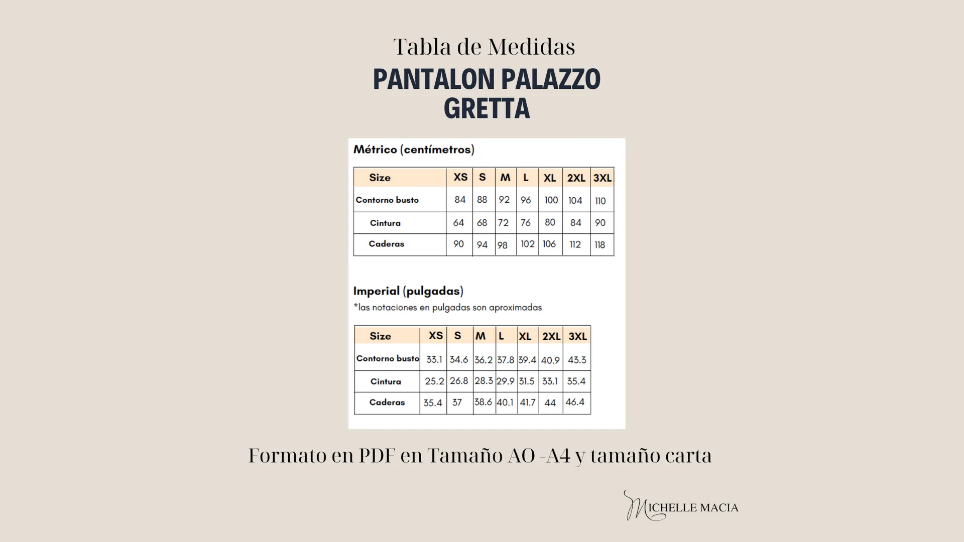 Todas las tallas se encuentran disponibles en el mismo archivo PDF