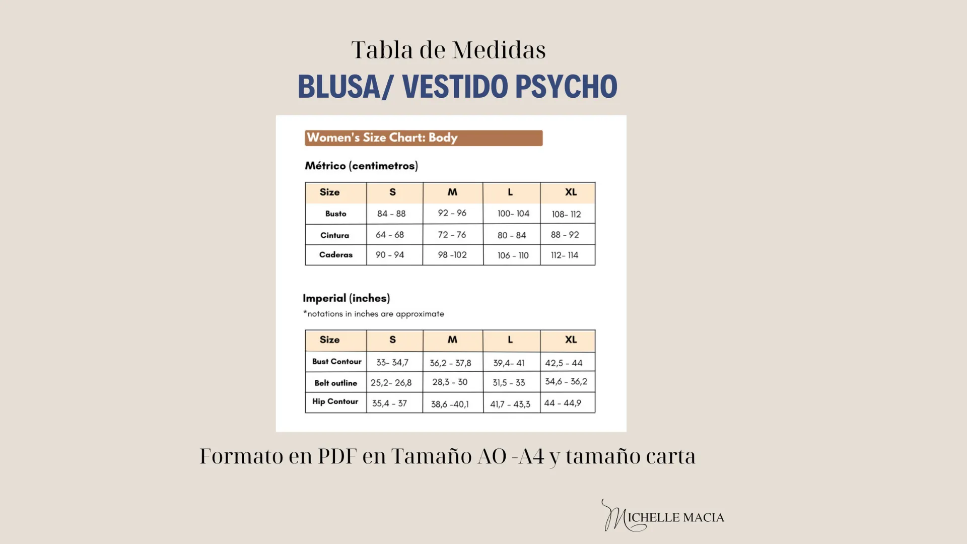 Todas las tallas se encuentran disponibles en el mismo archivo PDF