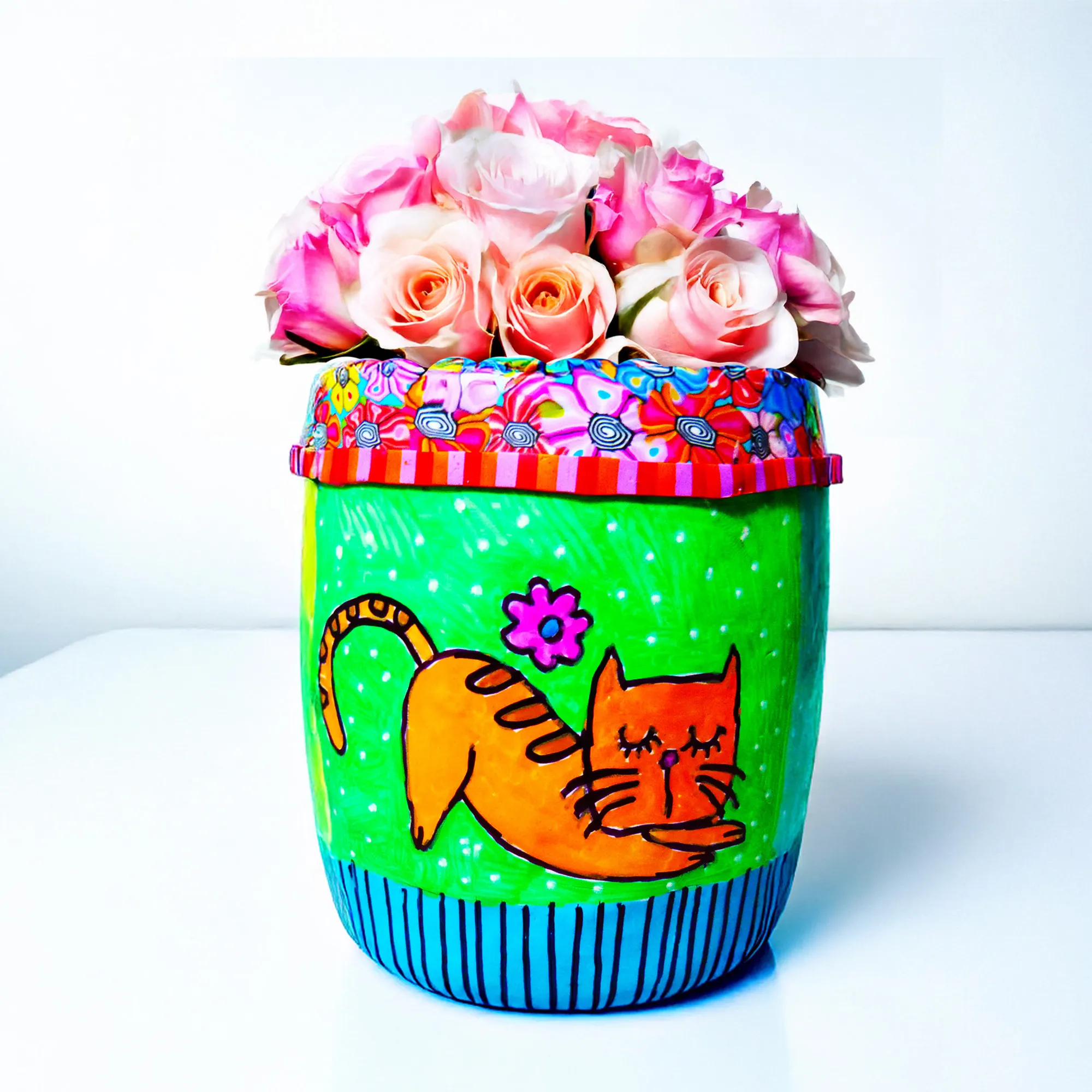Playful Cat Blossom Vase