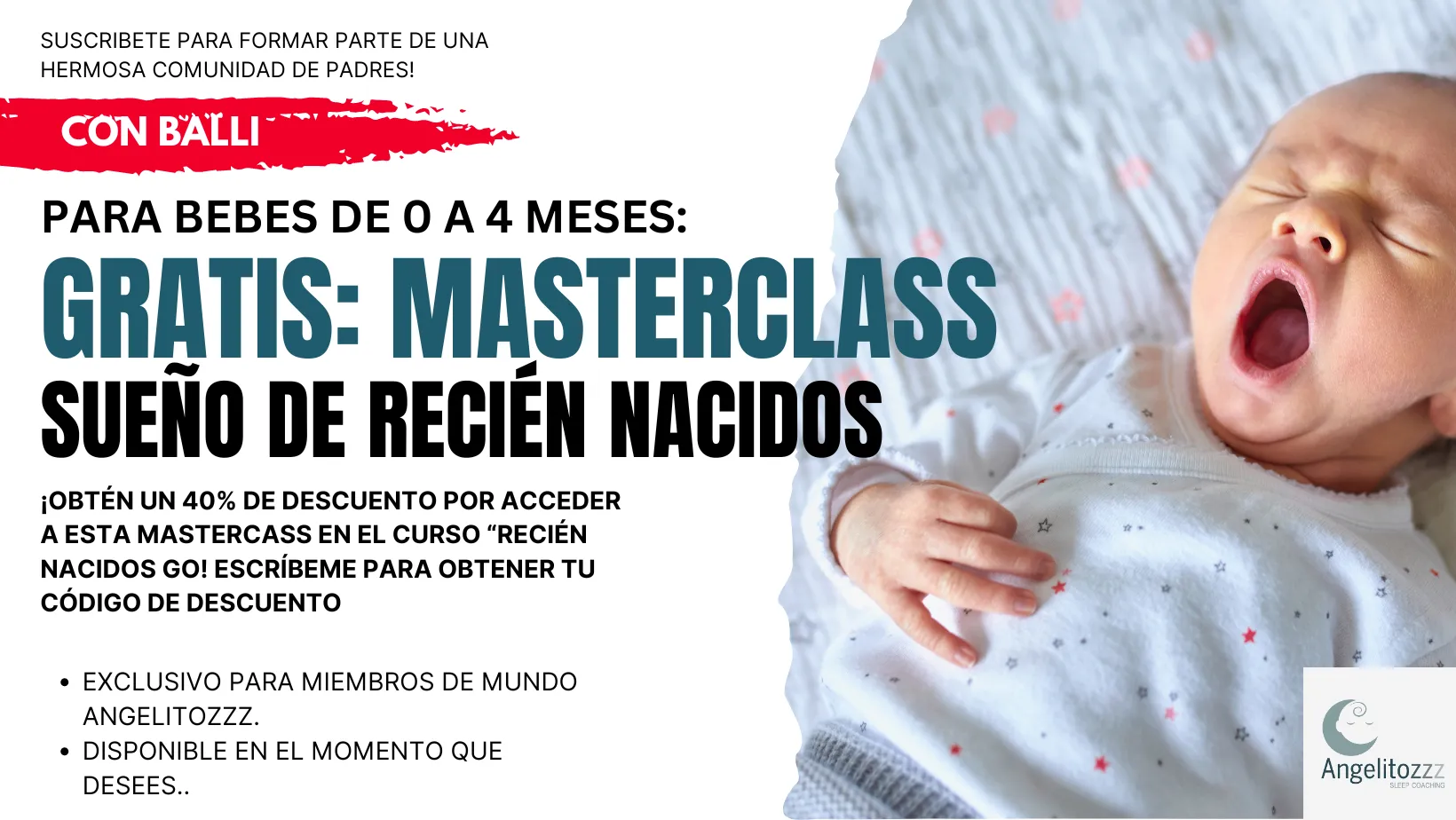 Si es que viste el MASTERCLASS, y quieres acceso total a nuestro curso RECIEN NACIDOS GO visita la web y al momento de comprar el curso usa el código de descuento "MASTERGO" (30% de descuento) para entrar en todo detalle en cada elemento que has aprendido en esta clase y aprender más trucos para que tu bebé pueda descansar mejor.