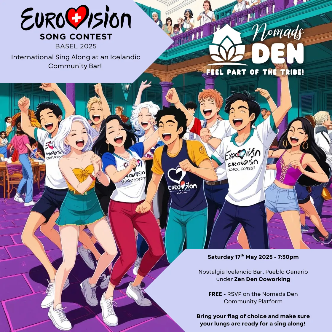 βοΈ For four years, it's been a Zen Den Coworking Tradition to unite under the banner of music and celebrate the Eurovision Grand Final together!