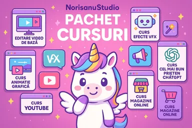 📚 Acest pachet este tot ce ai nevoie dacă vrei să creezi, să înveți și să vinzi online. Ai acces instant la 8 cursuri premium, explicate pas cu pas, în stilul NorisanuStudio