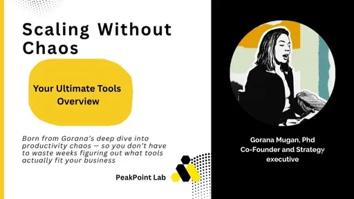 Stop wasting hours testing tools that don’t fit your business. Find the right systems for your team in minutes — and get back to growing your company. ____________________________________ You’ve downloaded every “Top 10 Tools” list out there. You’ve tried Slack, WhatsApp, Google Keep, and three different e-sign platforms — yet your team still misses messages, notes vanish into the void, and contracts get stuck in email chains. You’re not disorganized — your tools are. They don’t match how your business actually runs. If you’re leading a small but growing team, you don’t have time to “trial and error” your way through tech clutter. You need tools that actually work together, and a simple way to pick them — once and for all. ____________________________________ Your Ultimate Tools Overview gives you the clarity you’ve been missing. It’s a practical, no-fluff guide built for entrepreneurs who want to: - End the guessing game between free vs. paid options. - Choose the right mix of tools that match their current stage. - Save time, money, and mental energy — while setting up systems that scale. This isn’t another software list. It’s the filtered, field-tested version — built from what actually works inside small, fast-growing teams. ____________________________________ What’s Inside / What You Get? Inside this guide, you’ll find: - Note-Taking & Transcription Tools → What free plans actually cover, when to upgrade, and which tool grows with you. - Messaging Tools for Teams → WhatsApp Business vs. Slack — which one wins on clarity, collaboration, and control. - Document-Signing Tools → When the free tier is enough and when it’s worth paying. ____________________________________ PeakPoint Lab Tips → Our best real-world recommendations for keeping your systems lean, synced, and stress-free. Format: instant digital download (PDF/Canva format) Reading time: 15 minutes. Impact: hours of saved research and frustration. ____________________________________ If you already have real testimonials, include short, credible ones like: “This guide saved me days of testing — I finally stopped overpaying for tools that didn’t fit my business.” — Laura M., Founder of a 6-person coaching team “I used the messaging breakdown to decide between WhatsApp and Slack — total clarity in 10 minutes.” — Jonas T., Creative Agency Owner ____________________________________ Pricing + Guarantee One-time payment: $29.99 Instant access, no subscription, no upsells. ____________________________________ Stop guessing. Start scaling. 👉 Get Your Ultimate Tools Overview Now Clarity in 15 minutes. Lifetime value for your business.