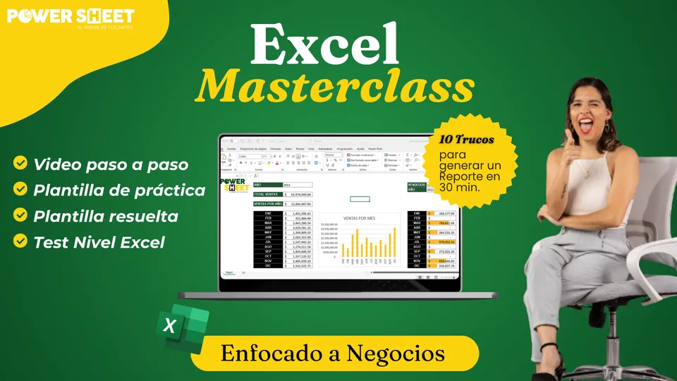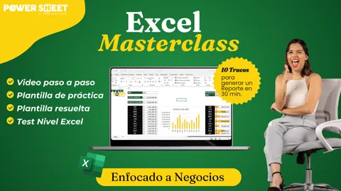 Masterclass totalmente gratuita en donde te muestro paso a paso una plantilla de practica, 10 trucos para generar un reporte ¡en solamente 30 minutos! Además te regalo la plantilla resuelta y un test para que sepas tu nivel de excel