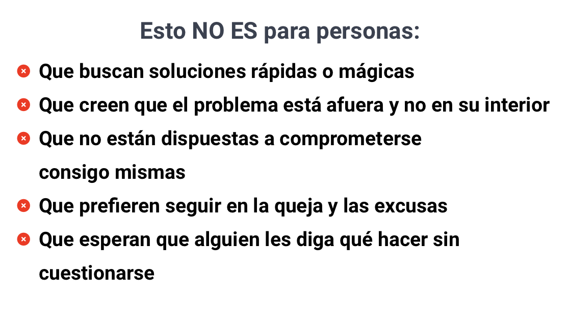 "Mi compromiso es con tu transformación, no con tu pago. Si no funciona para ti, no deberías pagar por ello."