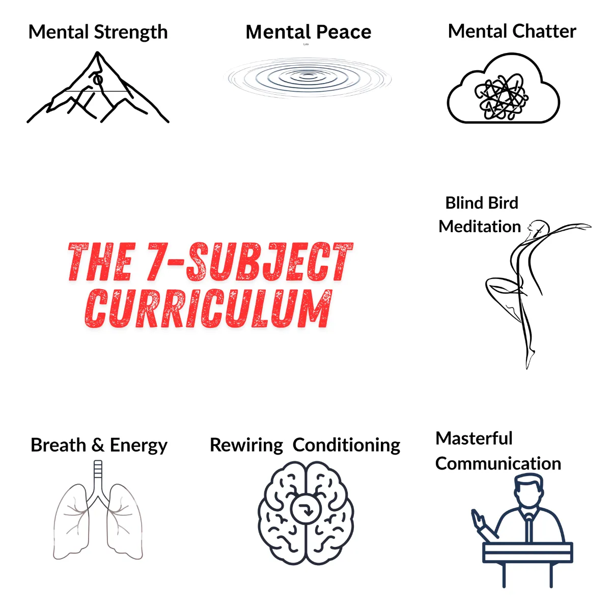 Go deep into the core areas of your life: 1. Mental Strength (The 4 C's)- Forge an unshakeable mind. Master the four core mental musclesโCommitment, Challenge, Control, and Confidenceโto build resilience and navigate any of life's obstacles with unwavering focus. 2. Mental Chatter - Quiet the internal noise. Learn the neuroscience behind your constant thoughts and gain practical techniques to calm the chaos, reduce anxiety, and reclaim your mental space for clarity. 3. Mental Peace - Attain profound, lasting serenity. Through mastering Vipassana meditation and understanding the theory of impermanence, you learn to observe thoughts without attachment, dissolving stress at its root. 4. Rewiring Childhood Conditioning - Free yourself from invisible scripts. Identify and reprogram the subconscious beliefs formed in your first 20 years, liberating yourself from outdated patterns that silently run your adult life. 5. Energy Mastery - Harness your body's power source. Unlock the neuroscience of breathing to directly influence your nervous system, mastering your electromagnetic energy to sustain vibrant vitality and balanced peace. 6. Conscious Movement - Transform movement into meditation. Through Blind Bird Meditation, you'll achieve deep, effortless stretching and a sweat-drenched body by surrendering to music, making daily practice a joy you'll crave. 7. Masterful Communication- Build bridges from the inside out. Grounded in the psychology of authentic connection, learn to communicate with clarity and empathy, transforming your relationships both personally and professionally.