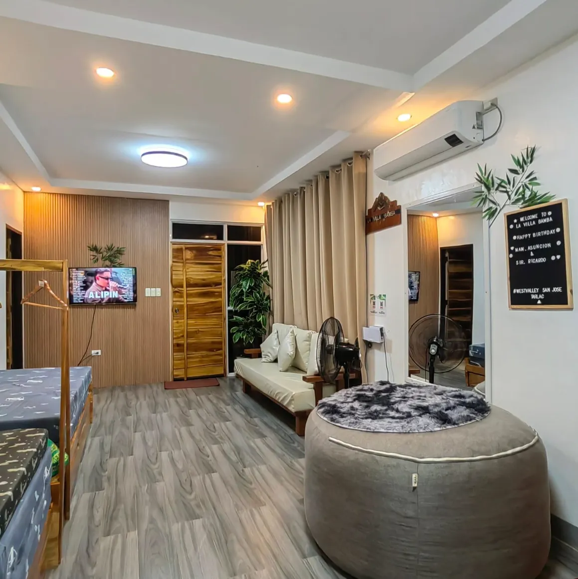* kiddie & adult pool * Full house air condition * 2 bedrooms (queen size and bunk beds / sofa bed in the living room * 3 Toilet & Bath (with shower heater) *Free Wifi * Free use of Karaoke * water Dispenser * Free use of firepit /bon fire * Free use of Refrigerator * free gallon of mineral Mineral water * free Induction Stove with basic cooking & dining utensils.