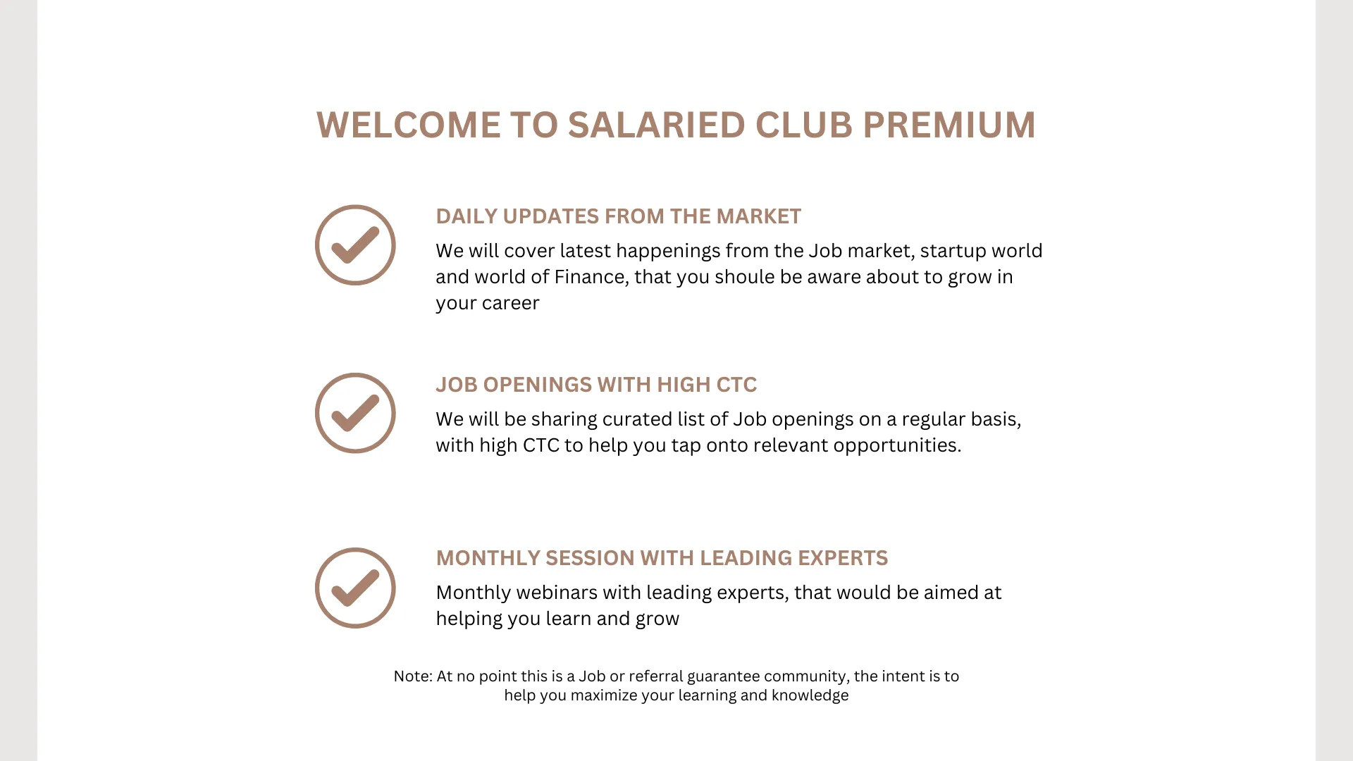Salaried Club Premium Membership is a paid program for people who want steady career
