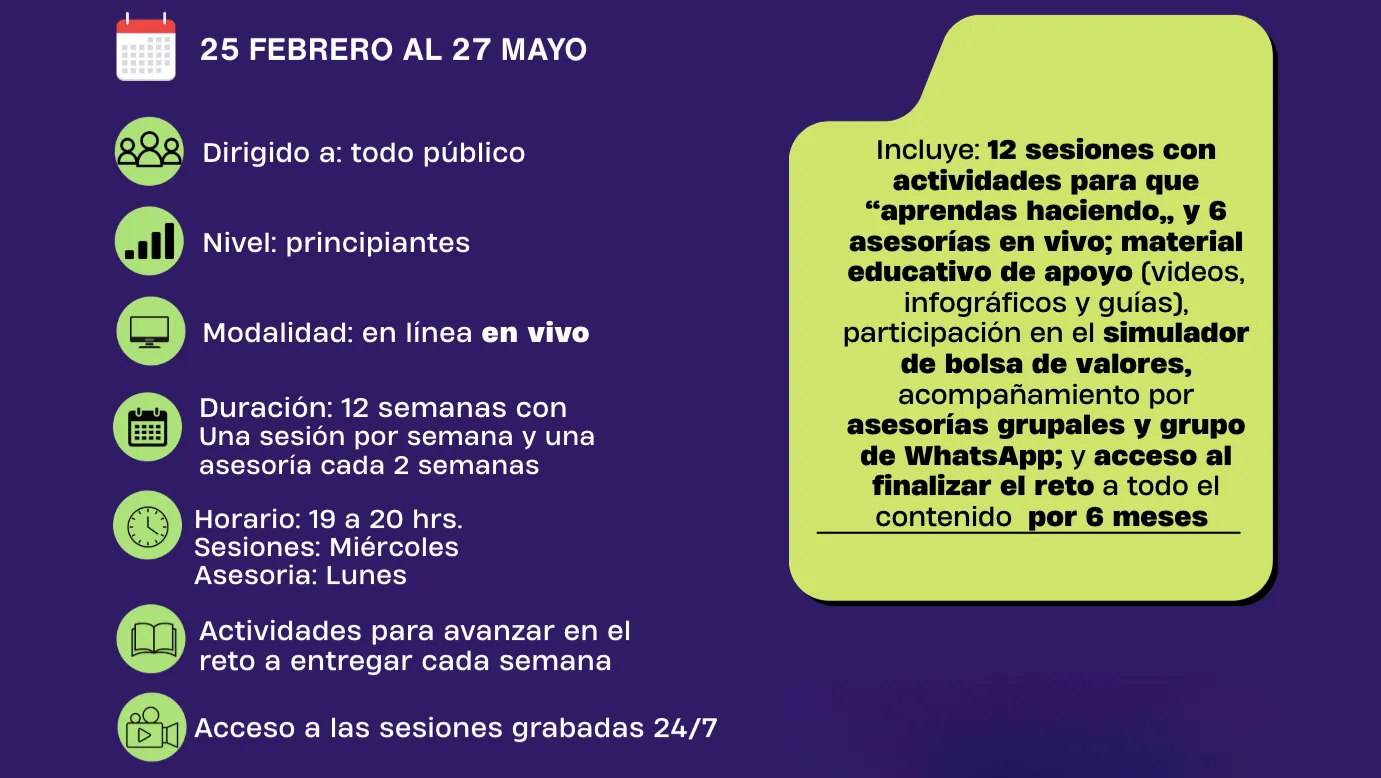 Al terminar el reto, no solo tendrás conocimientos, tendrás la confianza para hacer que tu dinero trabaje para ti y tu familia. Aquí está nuestra hoja de ruta: