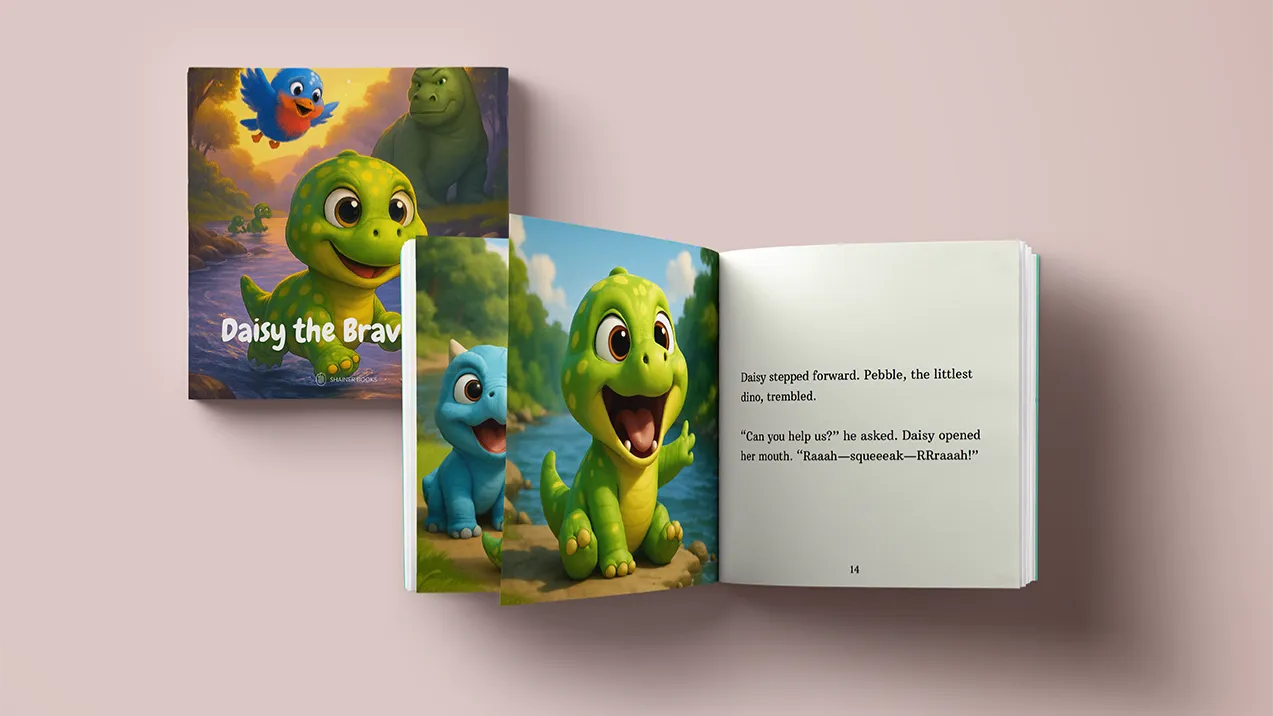 Discover "Daisy the Brave Dino", a charming children’s dinosaur book perfect for ages 3-7. This beautifully illustrated dinosaur picture book tells the story of Daisy, the smallest dinosaur in her herd, who learns that courage comes in all sizes. With themes of bravery, friendship, and confidence, this kids book about bravery encourages young readers to find their own unique voice.
