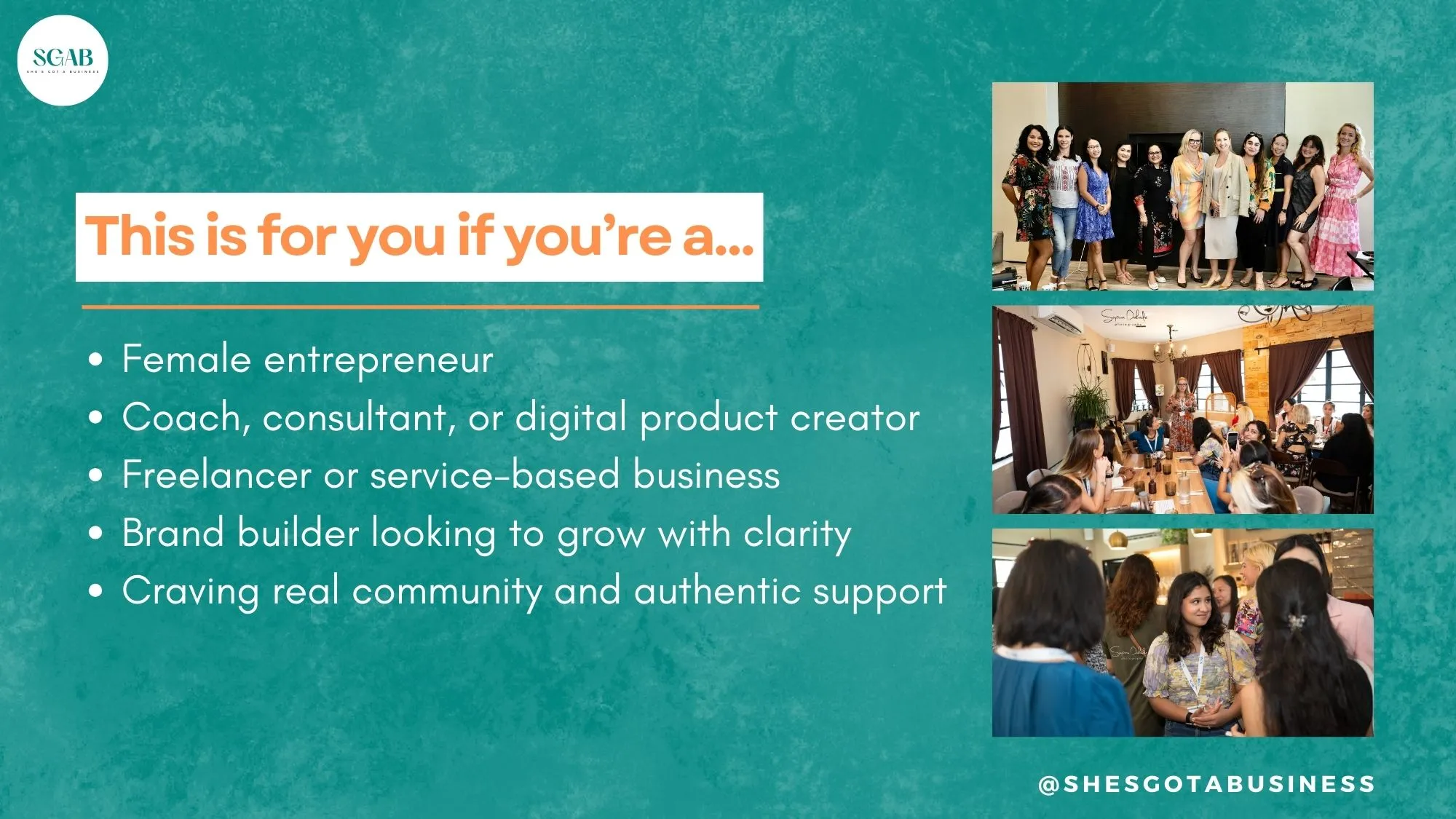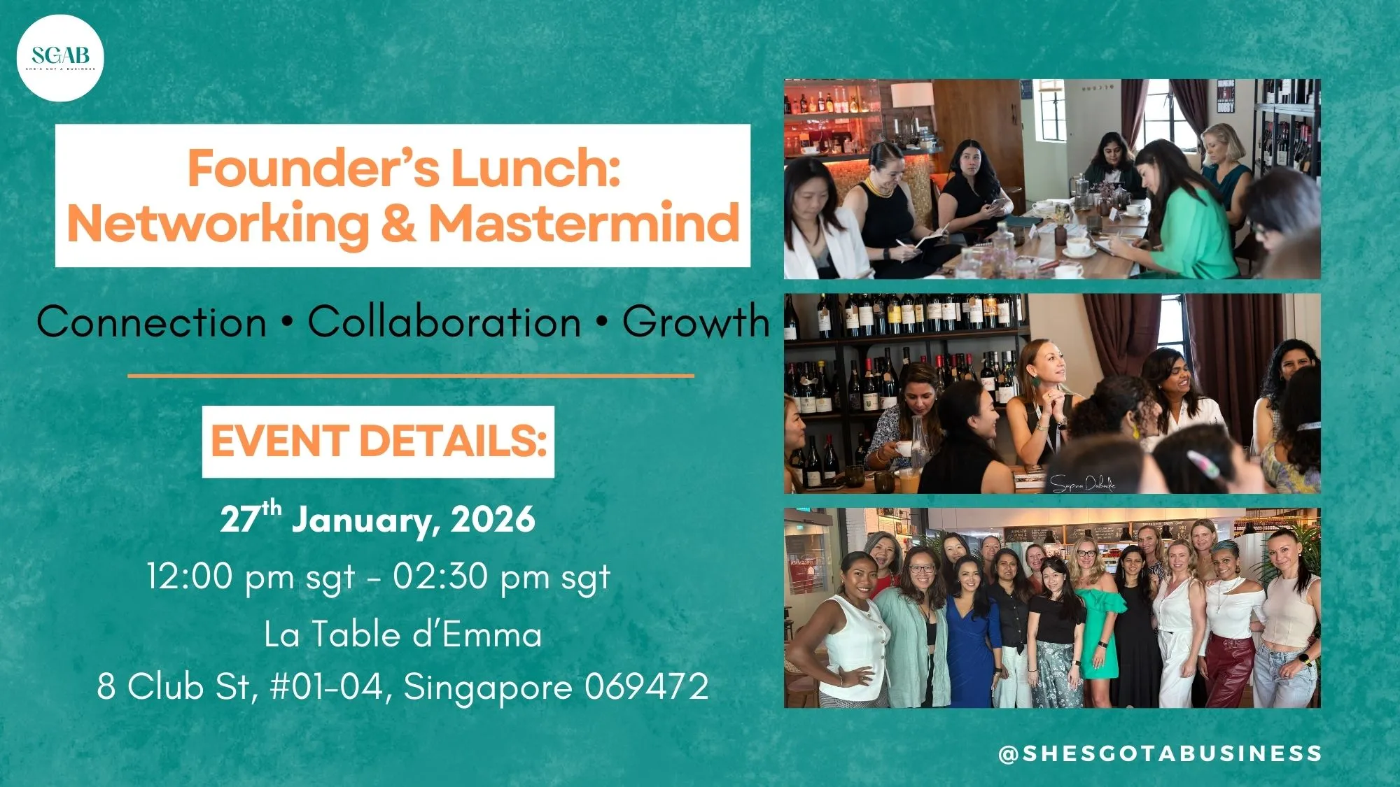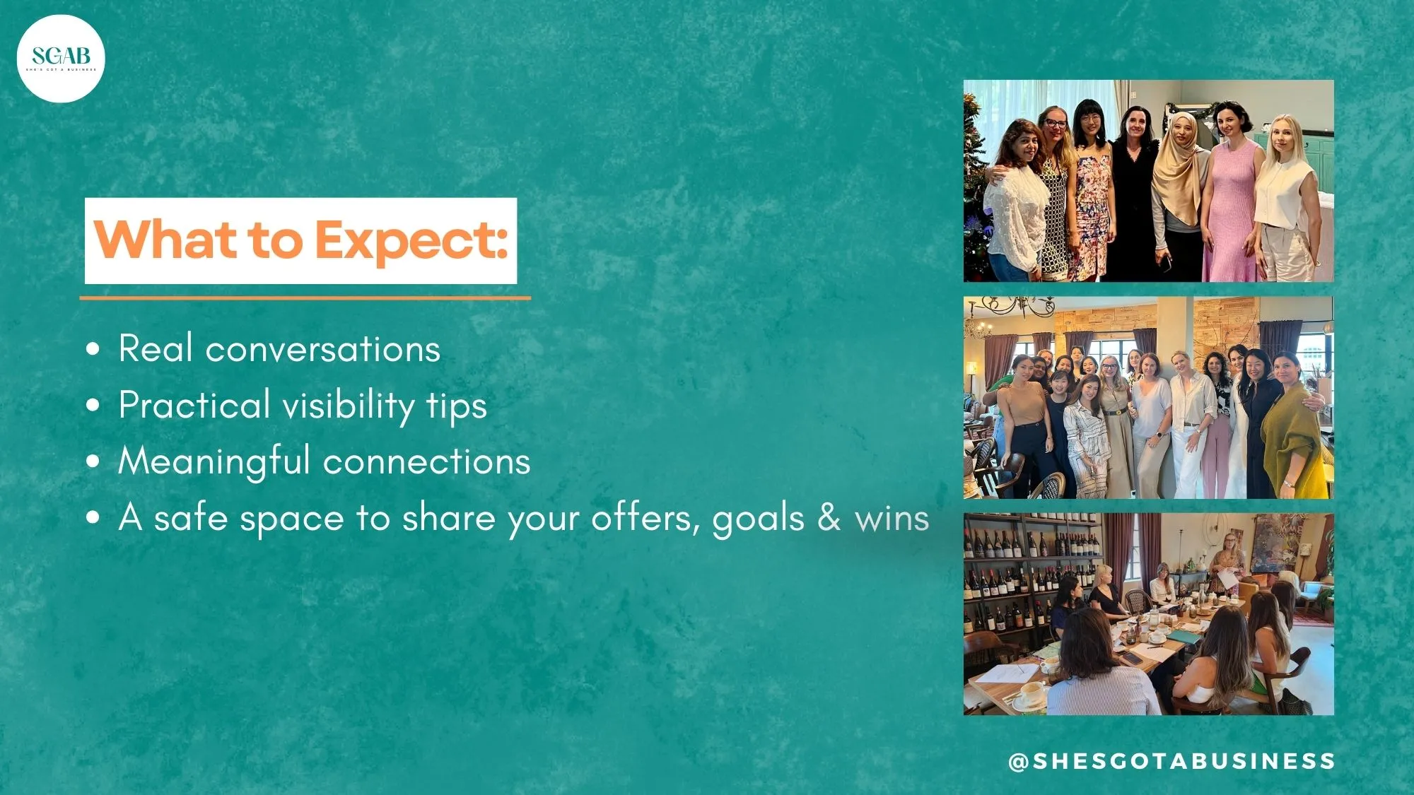 P.S. Photos and short videos may be taken during the event and shared online. If you do not wish to appear in any content, please contact us at grow@shesgotabusiness.com prior to the session.