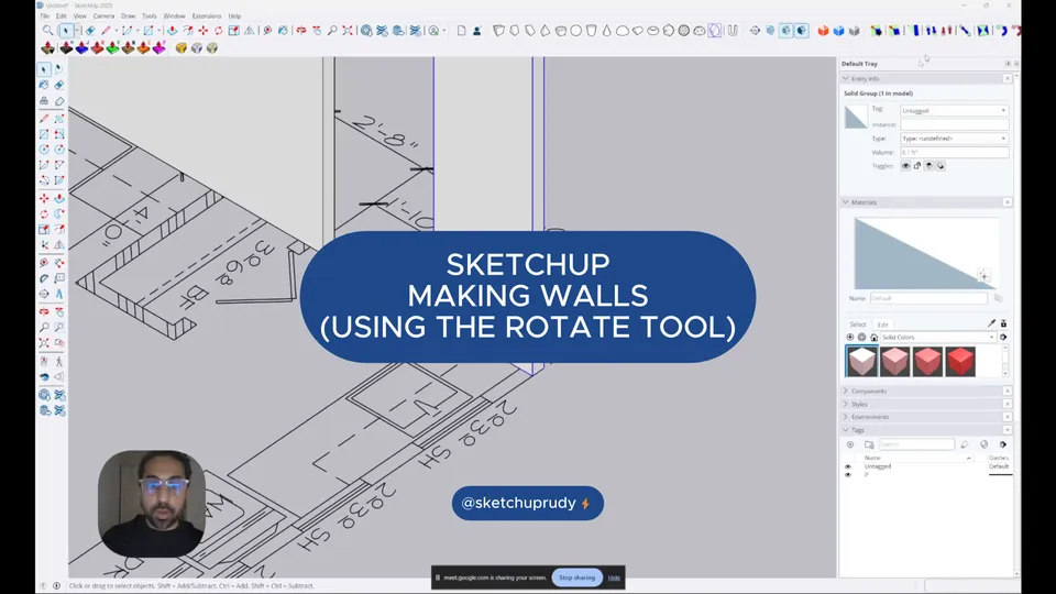 SketchUp Tutorial - Making Walls (Using the Rotate Tool)