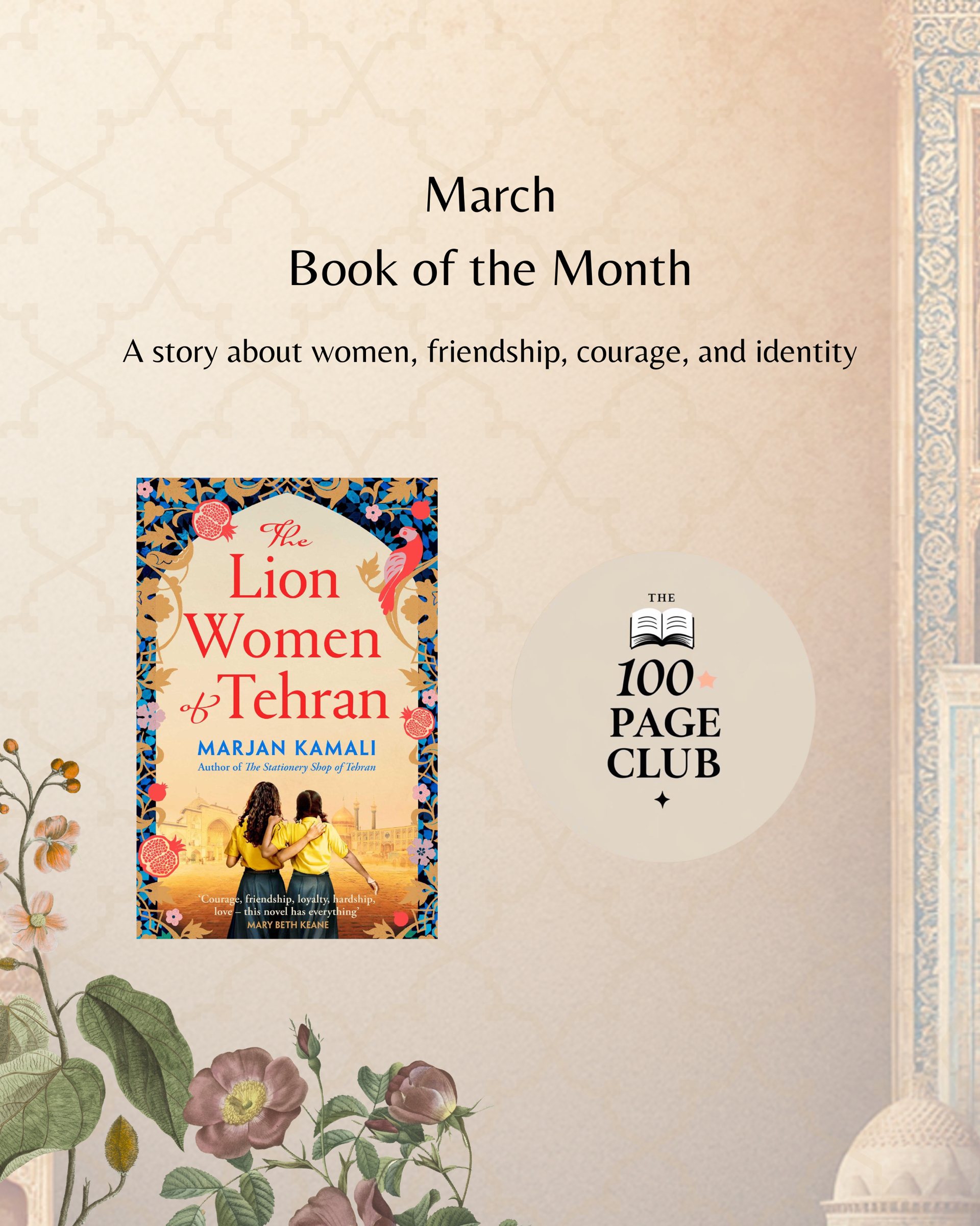 Women Authors, Women Stories, as we come together to discuss The Lion Women of Tehran by Marjan Kamali.