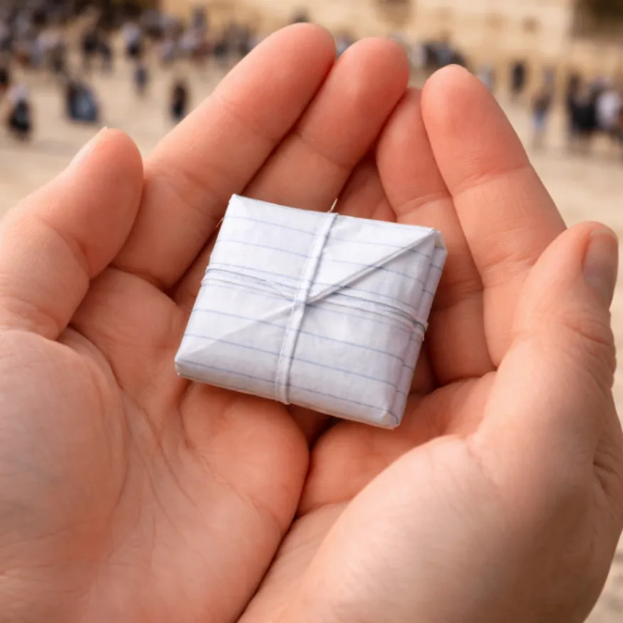 Your prayer joins a sacred practice believed to hold the Divine Presence at the Wall. Placing a prayer note in the Western Wall (the Kotel) is one of the most iconic and moving traditions in Jerusalem. It’s a practice that bridges the gap between the physical and the spiritual, used by millions of people regardless of their personal faith. Here is a breakdown of the history, meaning, and logistics of this ancient tradition: The Heart of the Tradition The tradition stems from the belief that the Shekhinah (the Divine Presence) never leaves the Western Wall. Because the Wall is a remnant of the retaining wall of the Second Temple, it is considered the holiest site where prayer can be offered. Writing a note—often called a kvitel (Yiddish for "little note")—is a way for a person to "leave" their prayer in this sacred space, ensuring their petition remains at the "doorstep of heaven" even after they depart. How It Works The Content: There are no rules for what to write. People include personal pleas for health, gratitude, or even peace for the world. The Placement: The notes are folded tightly and pushed into the cracks between the massive Herodian stones. Over time, the crevices have become packed with layers upon layers of paper. Modern Access: In the digital age, the tradition has expanded. You can now send prayers via email, fax, or websites. Designated staff in Jerusalem print these out and place them in the Wall on behalf of people who cannot travel there in person. What Happens to the Notes? A common question is: Does the Wall ever get full? The answer is yes. To make room for new prayers, the notes are cleared out twice a year: Before Rosh Hashanah (the Jewish New Year) Before Passover The process is handled with extreme respect: No Trash: According to Jewish law, because the notes contain the name of God or are considered holy objects, they cannot be thrown away. The Burial: The notes are collected using wooden tools (to avoid "harming" the stones) and are buried in a Genizah (a storage area for sacred texts) on the Mount of Olives. Did You Know? The tradition isn't just for the Jewish community. World leaders, including Popes and U.S. Presidents, have famously placed notes in the Wall during their visits as a sign of respect and personal reflection.