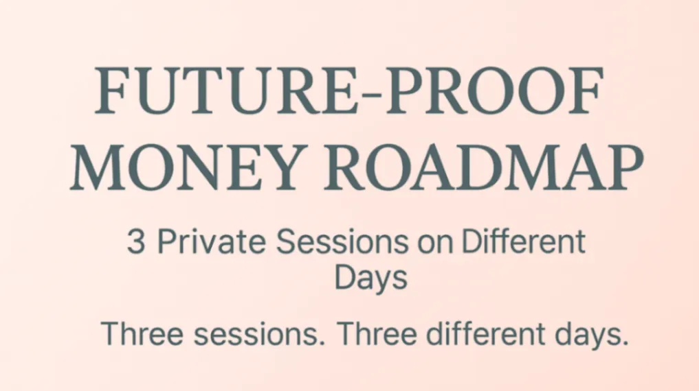 The Future-Proof Money Roadmap is a 3-session 1:1 experience designed to help you understand where you stand today, what needs to change, and how to move confidently toward long-term stability and peace of mind.