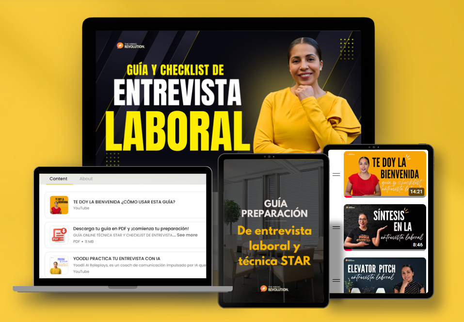 👉Video recomendación de Yoodli AI Roleplays para que practiques tu entrevista laboral con IA Aquí encontrarás las mejores recomendaciones para que te prepares con la técnica STAR además de tener: Un checklist con los detalles más importantes que tienes que identificar antes de tu entrevista: ✔️ Empresa y vacante ✔️ Imagen y herramientas ✔️ Logros y ejemplos ✔️ Preguntas y siguientes pasos Además tendrás una estructura sugerida para practicar tus respuestas de entrevista con las competencias más buscadas: ✅ Enfoque a resultados ✅ Planeación y organización ✅Calidad en el servicio ✅ Liderazgo ✅ Desarrollo de colaboradores ✅ Innovación Esta guía contiene las mejores recomendaciones que he dado a mis clientes que han conseguido empleo en empresas como: 👉 Amazon 👉 Citi Banamex 👉 Didi 👉 Oracle 👉 Rappi 👉 Siemens