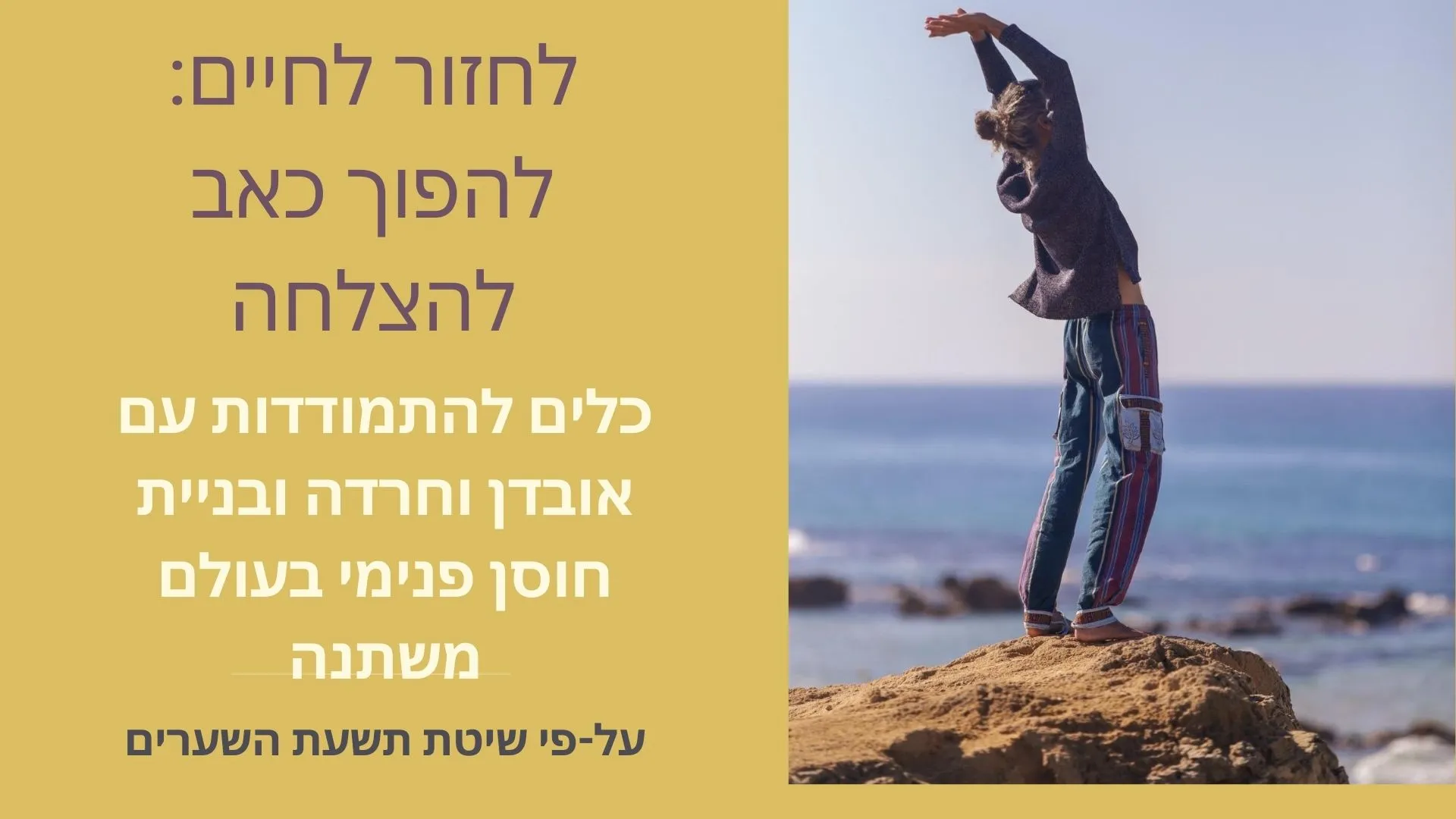יחד נלמד כיצד ליצור ודאות בתקופת אי-ודאות, כיצד לייצר ביטחון עצמי וכיצד למצוא יציבות.