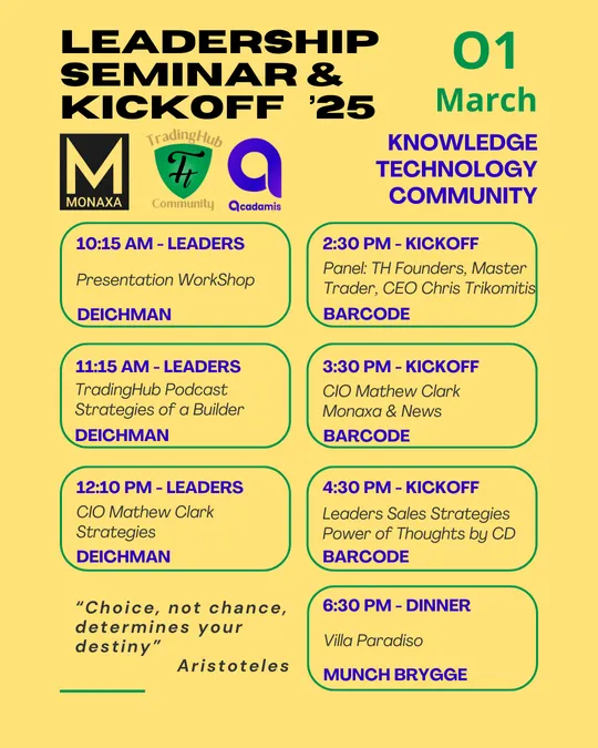 Join TradingHub Community on our Leadership Seminar and Kickoff event in Oslo on the 1st of March 2025. Monaxa is taking Scandinavia by storm!