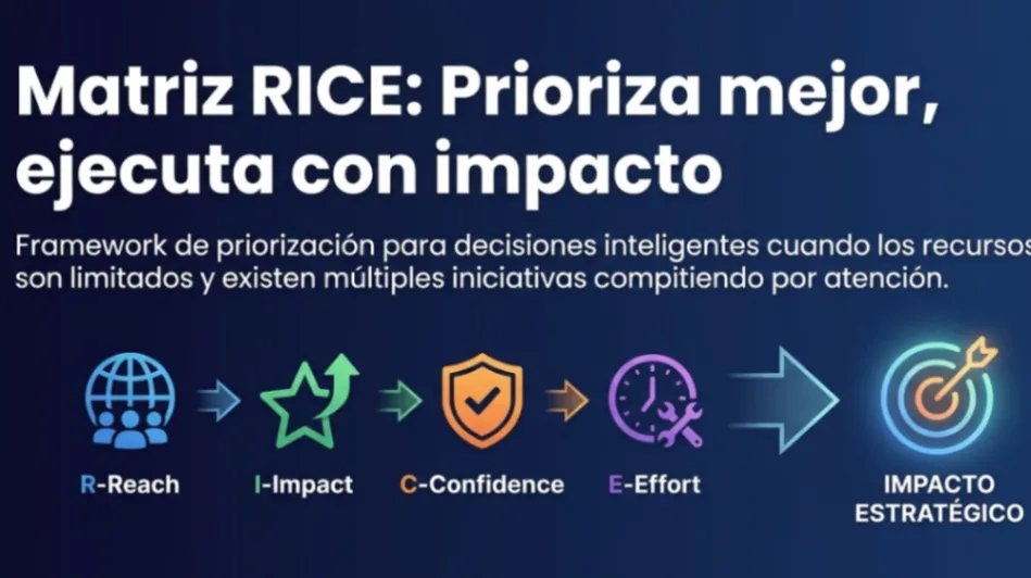 Por eso hoy les comparto un recurso práctico sobre la Matriz RICE, un framework sencillo pero poderoso para priorizar proyectos e iniciativas con enfoque en impacto y esfuerzo, no en opiniones.