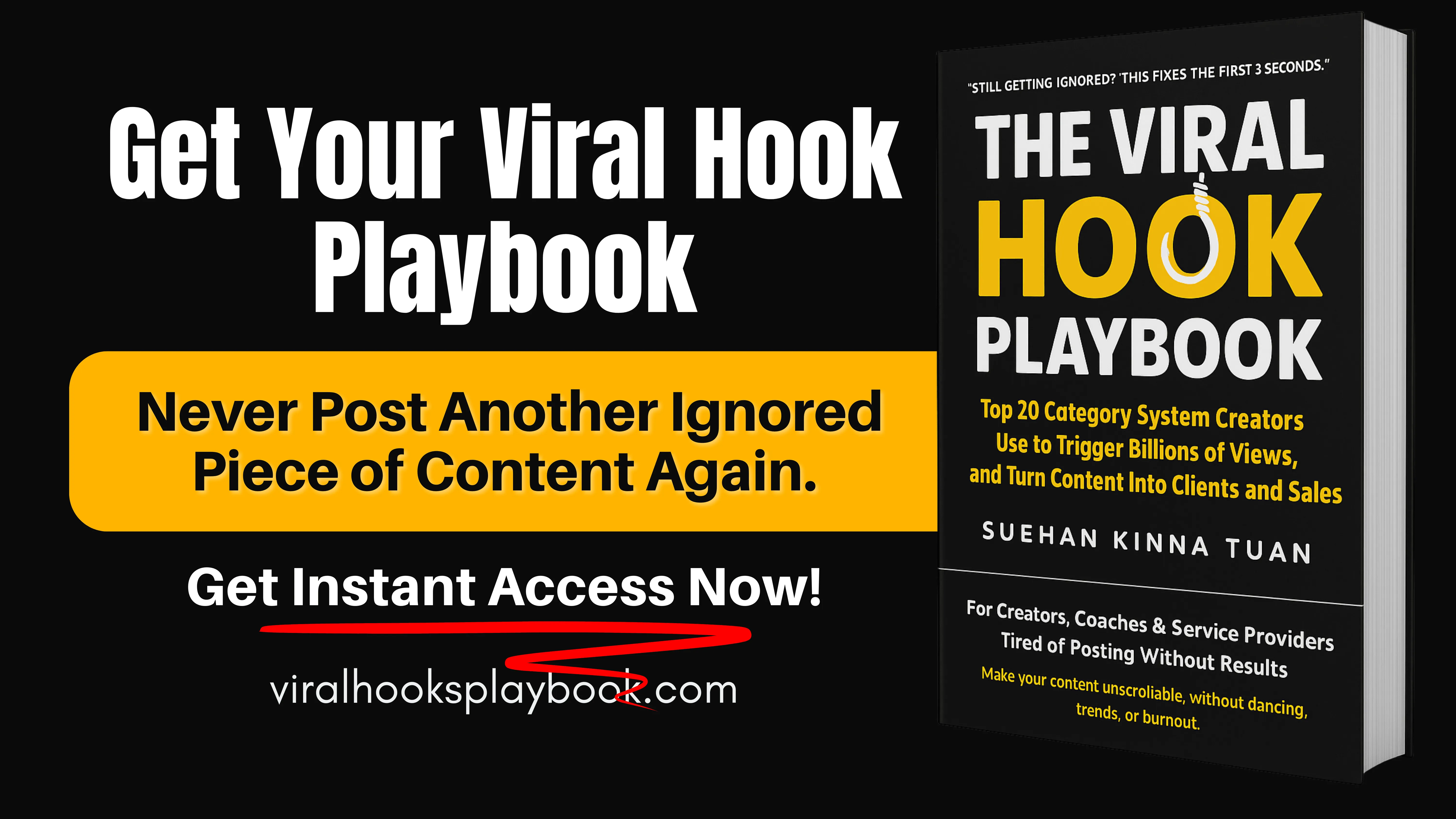 Your CHEAT CODE → The Viral Hook Playbook is your complete 20-category system for content creators like you, coaches & service providers who are tired of posting without results.