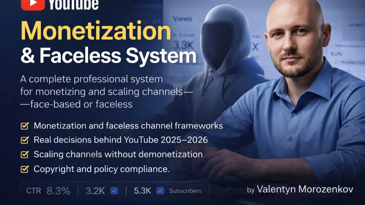 This course is a complete professional operating system for building, monetizing, and scaling YouTube channels in 2025–2026 — covering both face-based and faceless channel models.