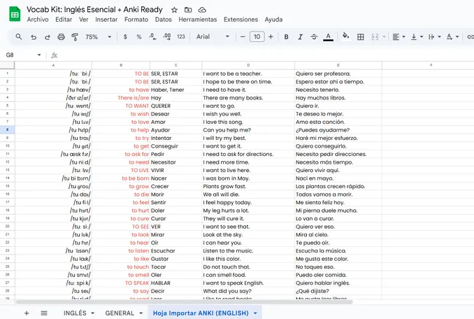 Incluye no solo una plantilla editable, sino también un mazo listo para Anki, la herramienta más potente para memorizar vocabulario a largo plazo.