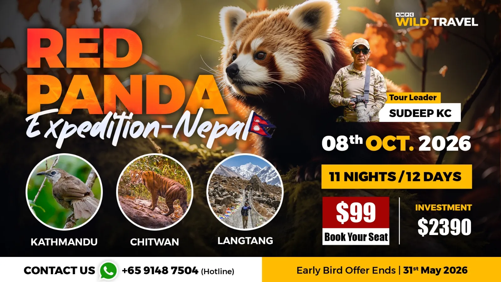 Season(s): October 2026 (autumn; best trekking weather, clear skies, high red panda activity)