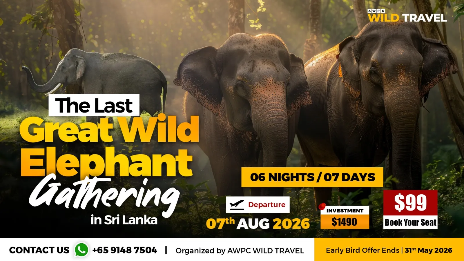 As a special launch offer, we are extending an early-bird rate of USD 1,490 exclusively for Wild Hub Premium members who confirm their bookings by 31st May 2026.