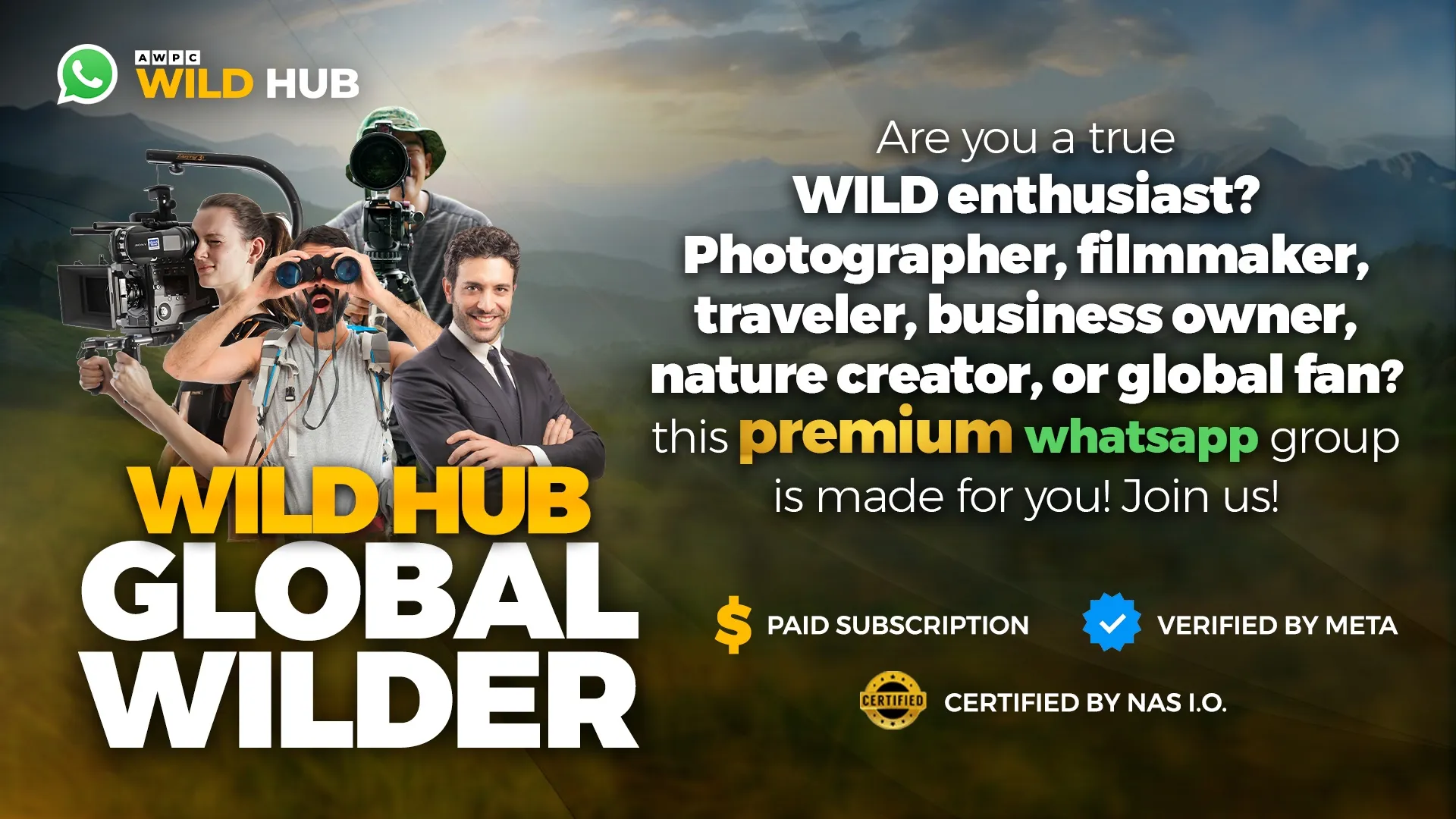 In the world of premium experiences, exclusivity equals value. The WILDHUB Premium introduces the Global Wilder WhatsApp Community—built for those ready to invest in growth, expand networks, and unlock global opportunities. If you’re serious about connecting, learning, and elevating your wildlife journey, then Global Wilder is for you.